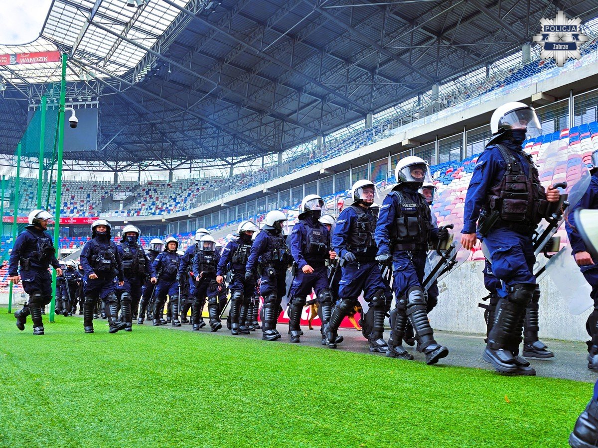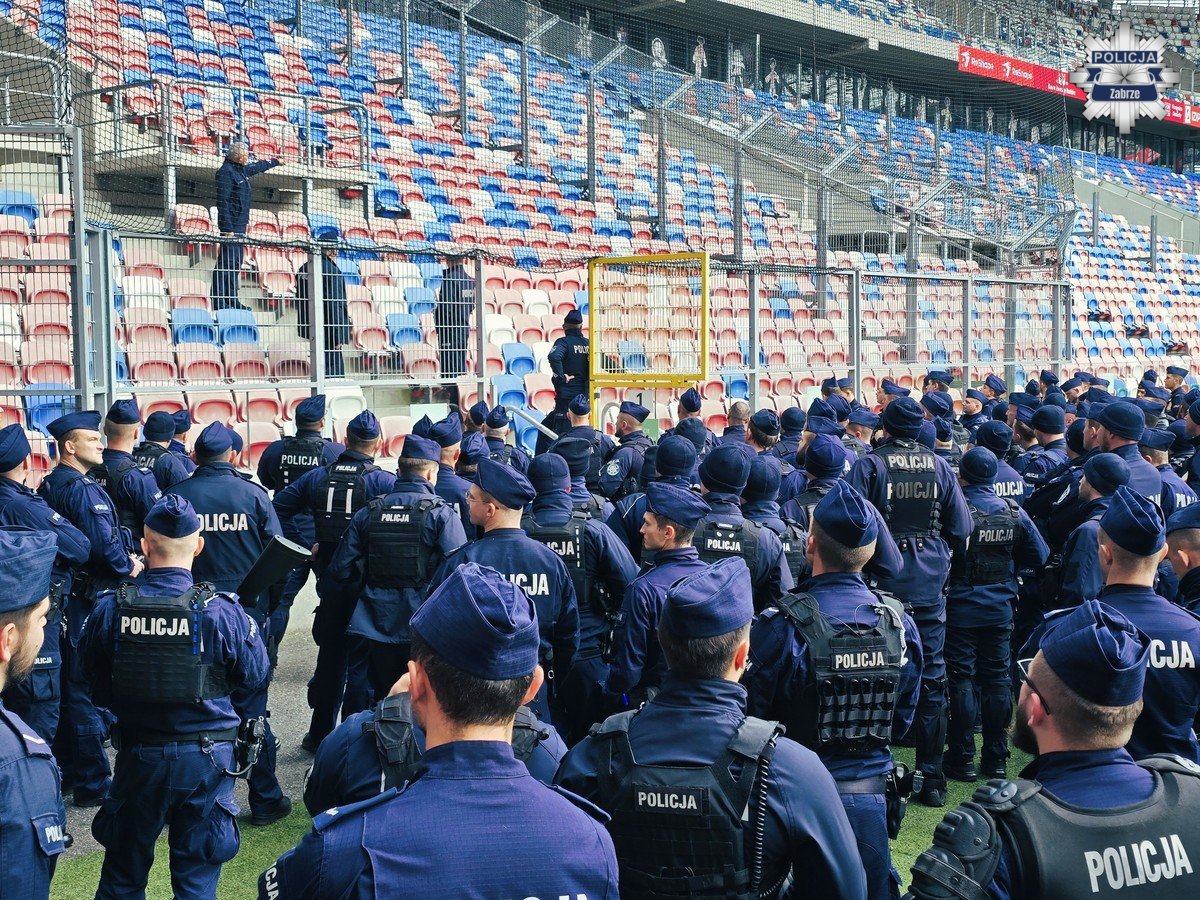 W środę rano na zabrzańskim stadionie przeprowadzono policyjne ćwiczenia. Po godzinie 9.00 kolumna ponad 40 pojazdów policyjnych w tym pojazdów specjalnych przyjechała do Zabrza, gdzie na terenie stadionu miejskiego ponad 250 policjantów z całego garnizony Śląskiego doskonaliło swoje umiejętności. Szkolenie miało na celu przede wszystkim zgranie ze sobą policjantów, którzy w razie zbiorowych zakłóceń ładu i porządku publicznego, będą interweniować w pododdziałach zwartych.